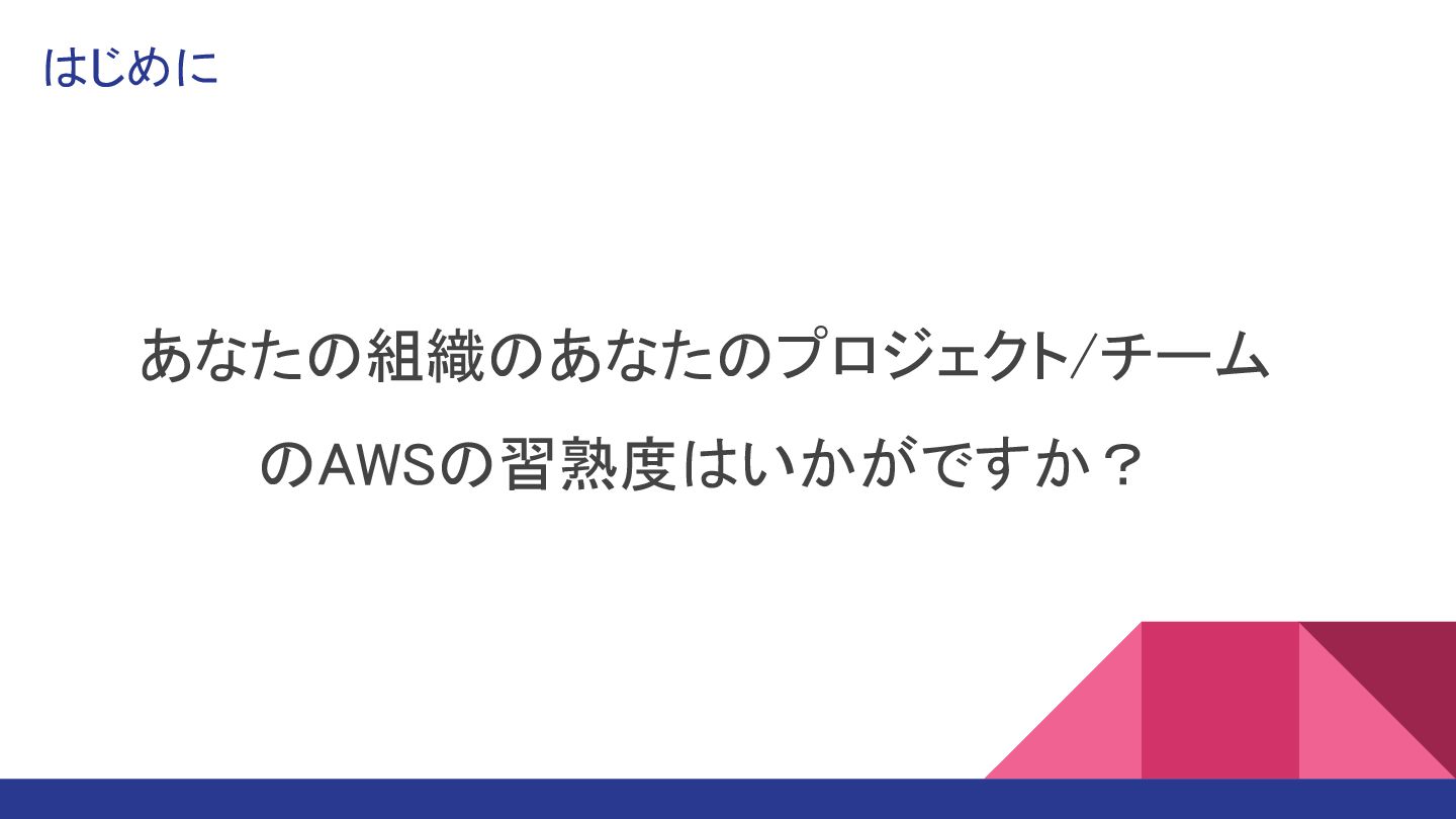 はじめに あなたの組織のあなたのプロジェクト/チーム のAWSの習熟度はいかがですか?