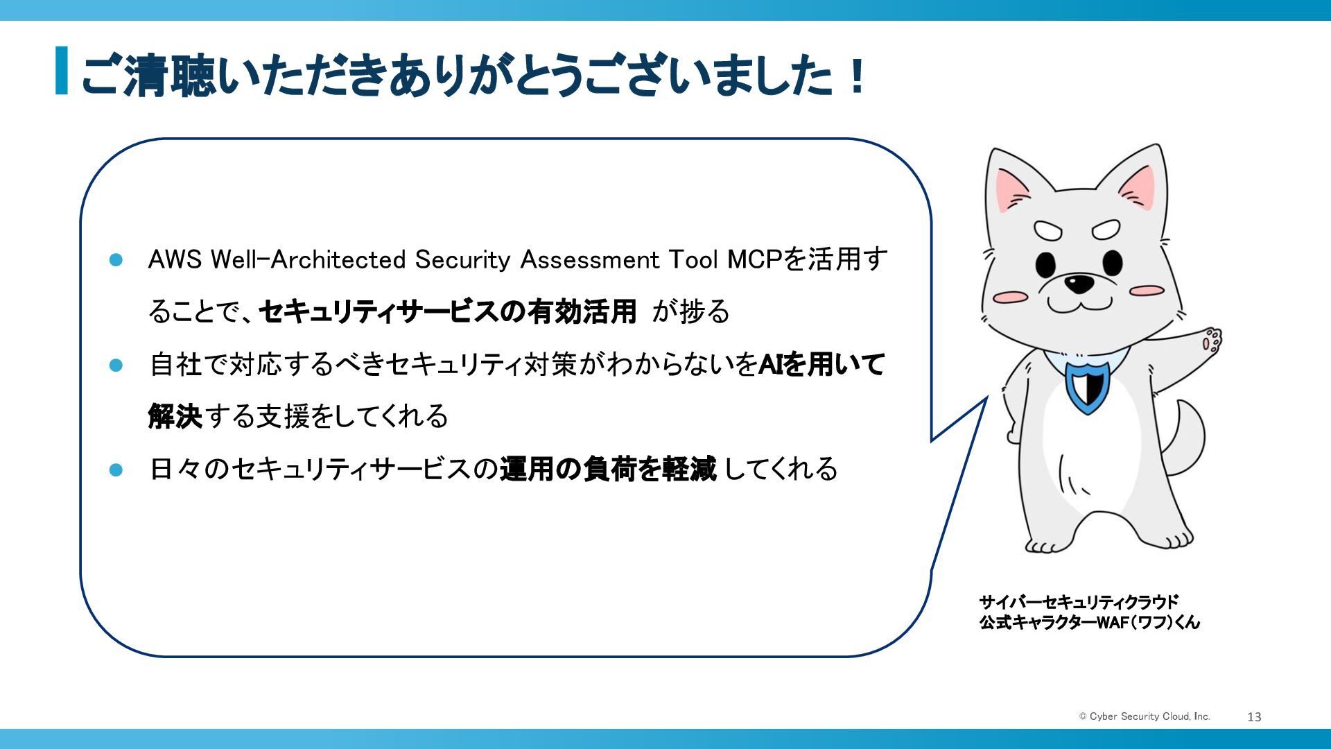 ご清聴いただきありがとうございました! © Cyber Security Cloud, Inc. 13 •