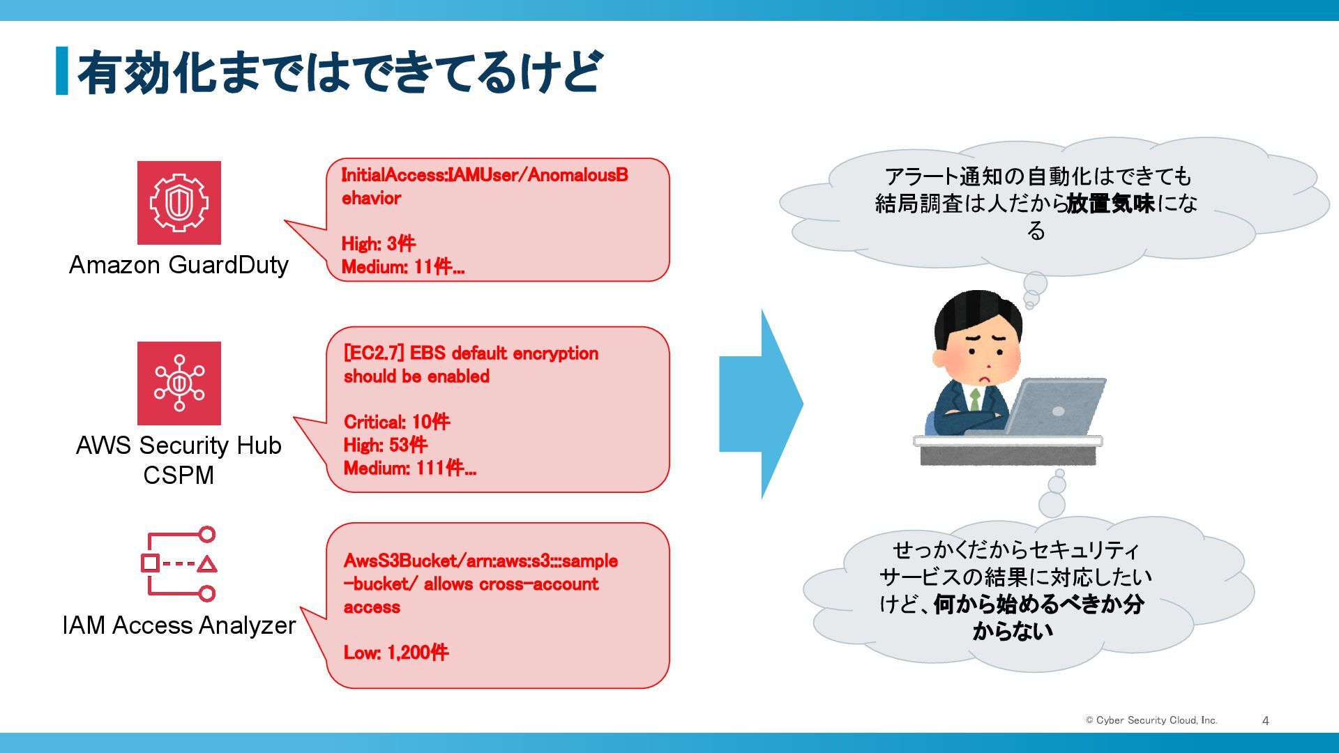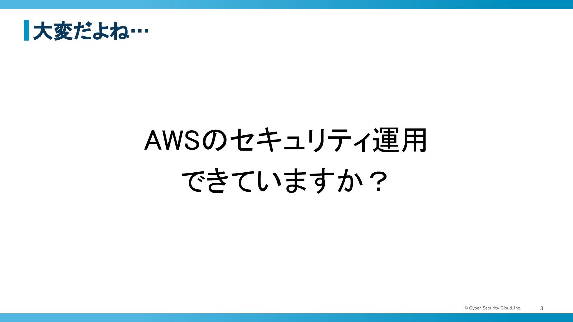 大変だよね… © Cyber Security Cloud, Inc. 3 AWSのセキュリティ運用