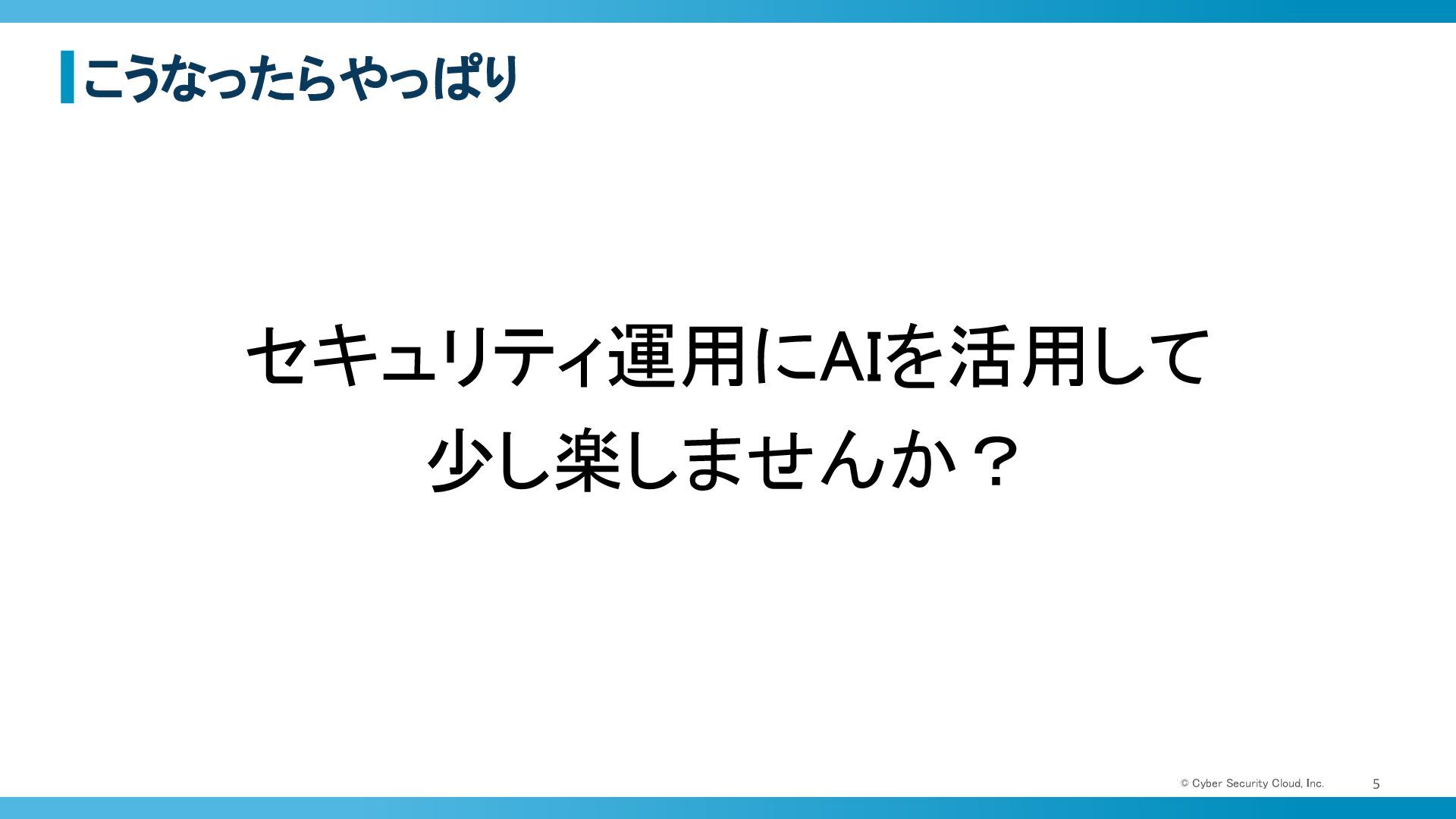 こうなったらやっぱり © Cyber Security Cloud, Inc. 5 セキュリティ運用にAIを活用して