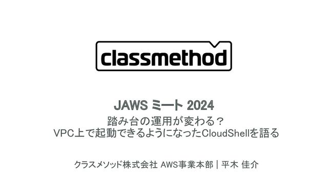 JAWS ミート 2024 踏み台の運用が変わる? VPC上で起動できるようになったCloudShellを語る クラスメソッド株式会社 AWS事業本部 | 平木
