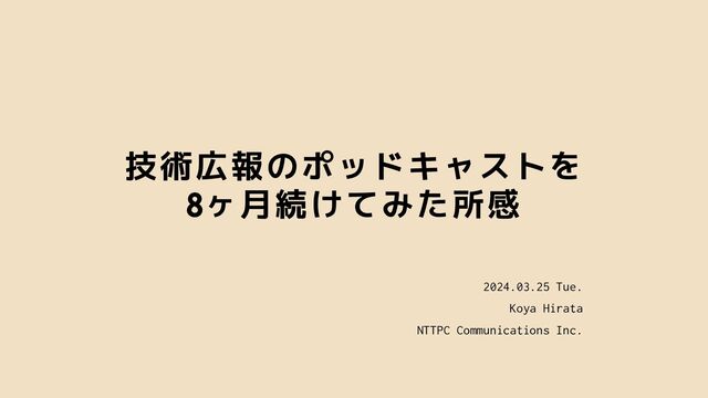 技術広報のポッドキャストを 8ヶ月続けてみた所感 2024.03.25 Tue. Koya Hirata NTTPC Communications Inc.