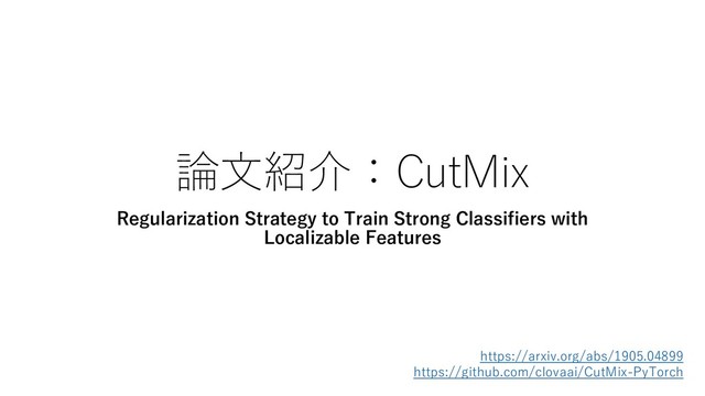 論文紹介:CutMix Regularization Strategy to Train Strong Classifiers with Localizable Features