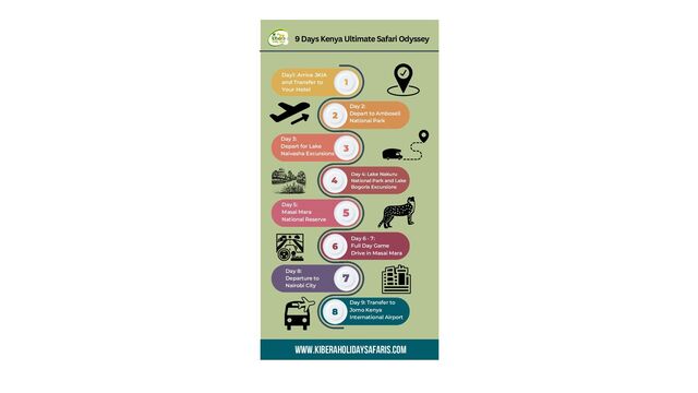 Experience the 9-Day Kenya Ultimate Safari Odyssey with Kibera Holiday Safaris. Explore breathtaking landscapes, witness diverse wildlife, and immerse yourself in local culture. Enjoy luxury accommodations and expert-guided tours for an unforgettable adventure. Book your safari journey today at - https://kiberaholidaysafaris.com/tours/9-days-kenya-ultimate-safari-odyssey/