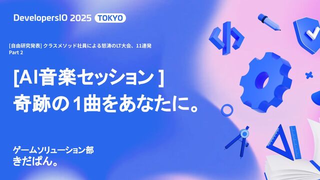 [AI音楽セッション ] 奇跡の1曲をあなたに。 きだぱん。 ゲームソリューション部 [⾃由研究発表] クラスメソッド社員による怒涛のLT⼤会、11連発 Part 2