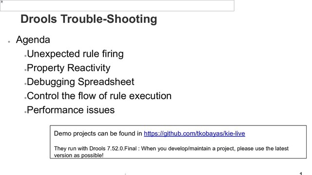 In this session, Toshiya will guide us through how to identify issues in Drools solutions. Some examples are:
