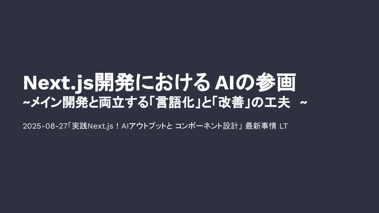 2025-08-27「実践Next.js!AIアウトプットと コンポーネント設計」 最新事情 LT にて登壇