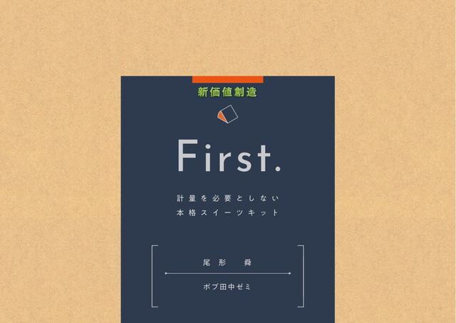 ア イ デ ア 8 レシピや型、要冷蔵⾷材を含めて お菓⼦をつくるために必要な材料を 必要量同封したスイーツキットの プロトタイプを制作し、企業提案を ⾏った。