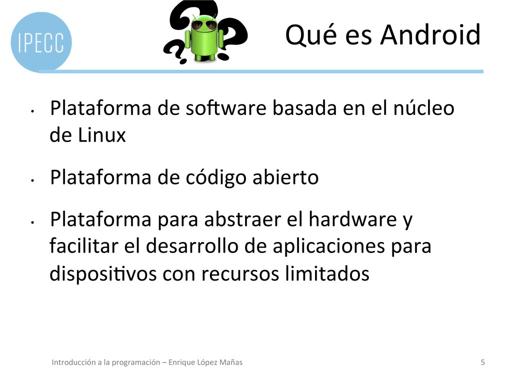 Presentación para el módulo de Introducción a la Programación y Desarrollo con Android del Máster en Desarrollo de Videojuegos para Móviles de la IPECC