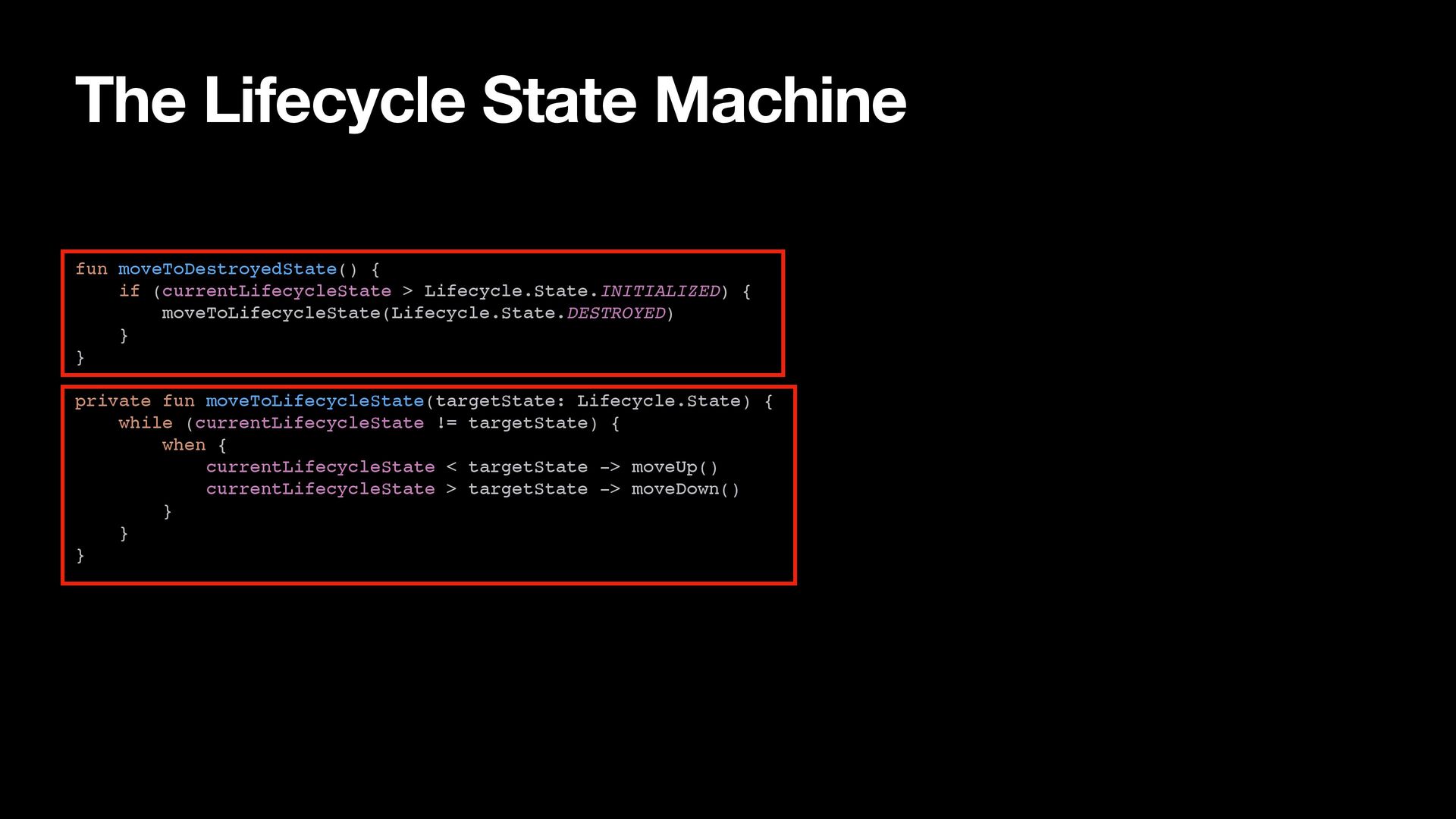 : LifecycleEventObserver { private var currentLifecycleState: Lifecycle.State = Lifecycle.State.INITIALIZED override fun onStateChanged(source: LifecycleOwner, event: Lifecycle.Event) { when (event) { // [mapView.onDestroy] is only invoked from AndroidView->onRelease. Lifecycle.Event.ON_DESTROY -> moveToBaseState() else -> moveToLifecycleState(event.targetState) } } /** * Move down to [Lifecycle.State.CREATED] but only if [currentLifecycleState] is actually above that. * It's theoretically possible that [currentLifecycleState] is still in [Lifecycle.State.INITIALIZED] state. * */ fun moveToBaseState() { if (currentLifecycleState > Lifecycle.State.CREATED) { moveToLifecycleState(Lifecycle.State.CREATED) } } •