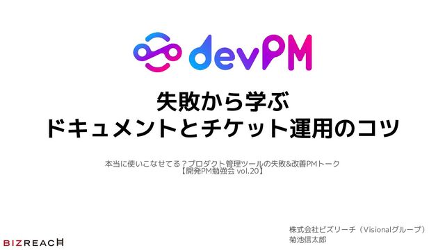 失敗から学ぶ ドキュメントとチケット運用のコツ 株式会社ビズリーチ(Visionalグループ) 菊池信太郎 本当に使いこなせてる?プロダクト管理ツールの失敗&改善PMトーク 【開発PM勉強会 vol.20】