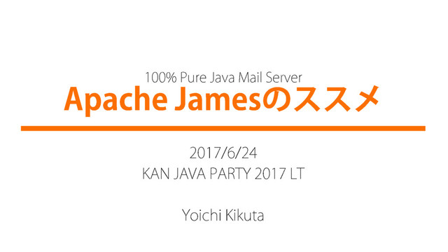関ジャバ主催イベントのKANJAVA PARTY 2017 LT資料です。100% Pure Java Mail ServerのApache Jamesについて。