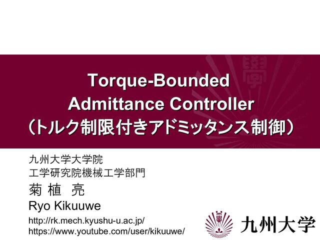日本ロボット学会における講演,2017年9月13日(水). より詳細な技術情報は,IEEE Transactions on Roboticsから出版されています. http://dx.doi.org/10.1109/TRO.2019.2920069 https://home.hiroshima-u.ac.jp/kikuuwe/pub/19_tro_aut.pdf 特許出願済み技術です.