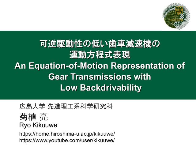 キーワード:バックドライバビリティ,backdrivability,摩擦,運動方程式,微分代数包含式,微分包含式,ギアボックス