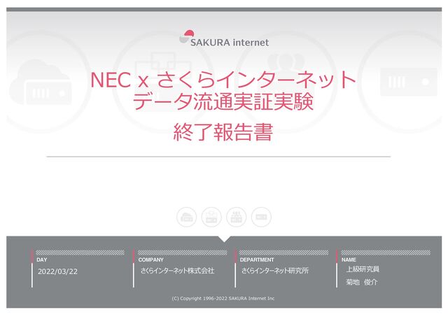 さくらインターネット研究所では、NECと共同で4年にわたりFIWARE基盤を利用したデータ流通実証実験を実施してきました。この度、実証実験終了にあたり終了報告書をまとめましたので公開いたします。 実証実験終了報告書では、実証実験の狙い、4年間の実績(構築したシステム、可視化事例、規約、登録データ等)、実証実験を通じて得られた知見等をまとめております。スマートシティやデータ流通、その実現手段であるFIWARE等についてご興味・ご関心をお持ちの方はぜひご一読いただければと思います。