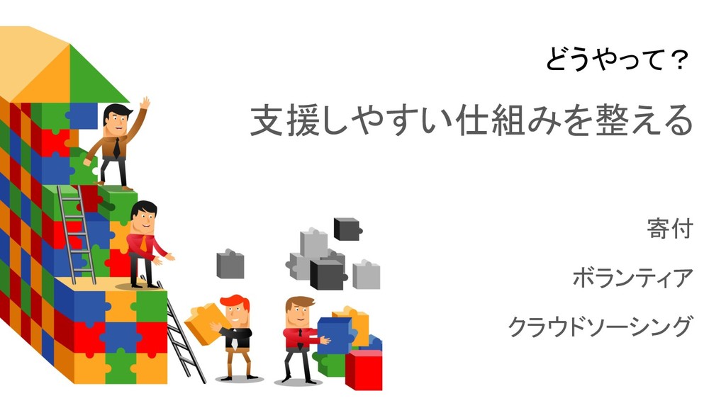 どうやって? 支援しやすい仕組みを整える 寄付 ボランティア クラウドソーシング