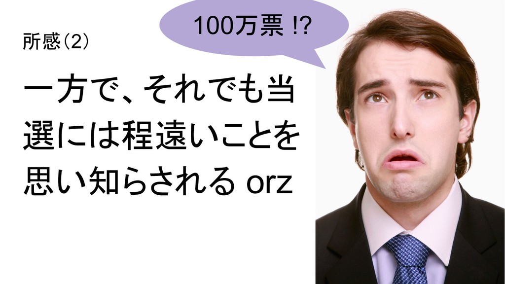 所感(2) 一方で、それでも当 選には程遠いことを 思い知らされる orz 100万票 !?