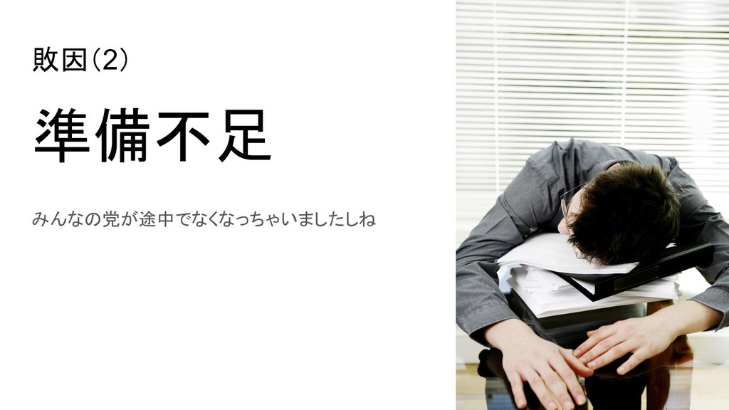 敗因(2) 準備不足 みんなの党が途中でなくなっちゃいましたしね