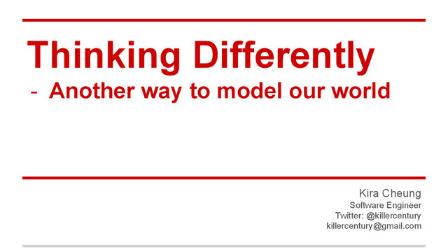 This presentation talks about the philosophy behind reactive extension or functional reactive programming, and why I believe we should rethink of our current programming models with the facts of our world.