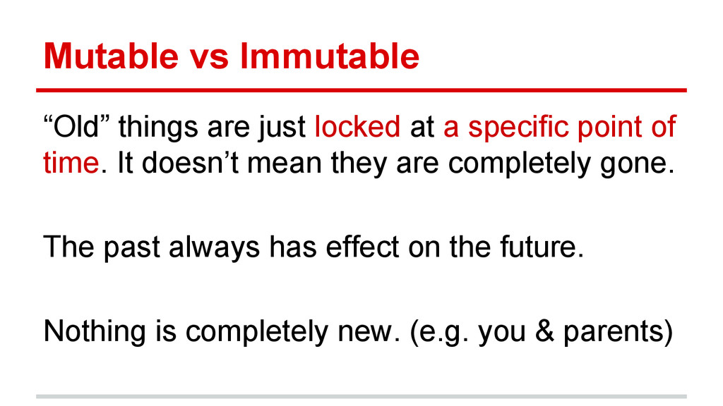 specific point of time. It doesn’t mean they are completely gone. The past always has effect on the future. Nothing is completely new. (e.g. you & parents)