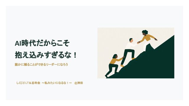 AI時代だからこそ 抱え込みすぎるな! 誰かに頼ることができるリーダーになろう しくじり LT&忘年会 〜私みたいになるな!〜 @神田