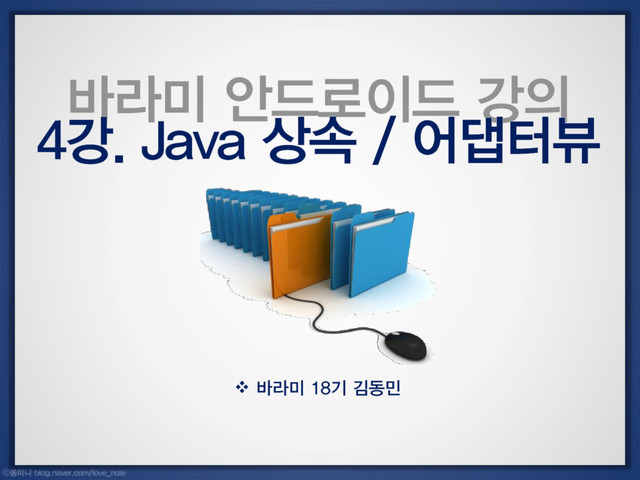 한양대학교 바라미 신입생을 위해 2014년 1학기에 진행한 안드로이드 강의입니다.