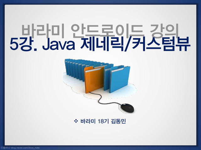 한양대학교 바라미 신입생을 위해 2014년 1학기에 진행한 안드로이드 강의입니다.