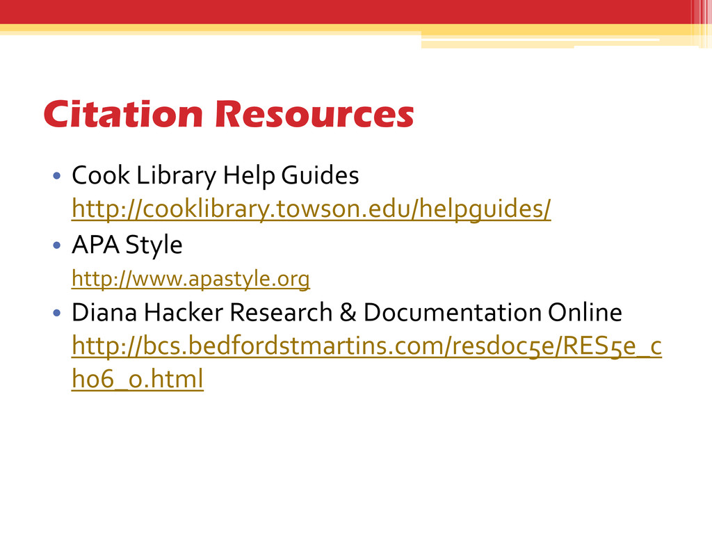 = MLA Handbook for Writers of Research Papers (MLA) • Social Sciences = American Psychological Association (APA) http://apastyle.apa.org/ http://www.mla.org/store/CID24/PID363