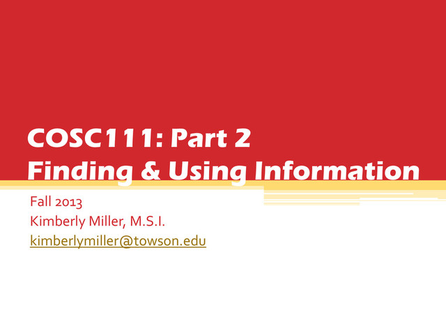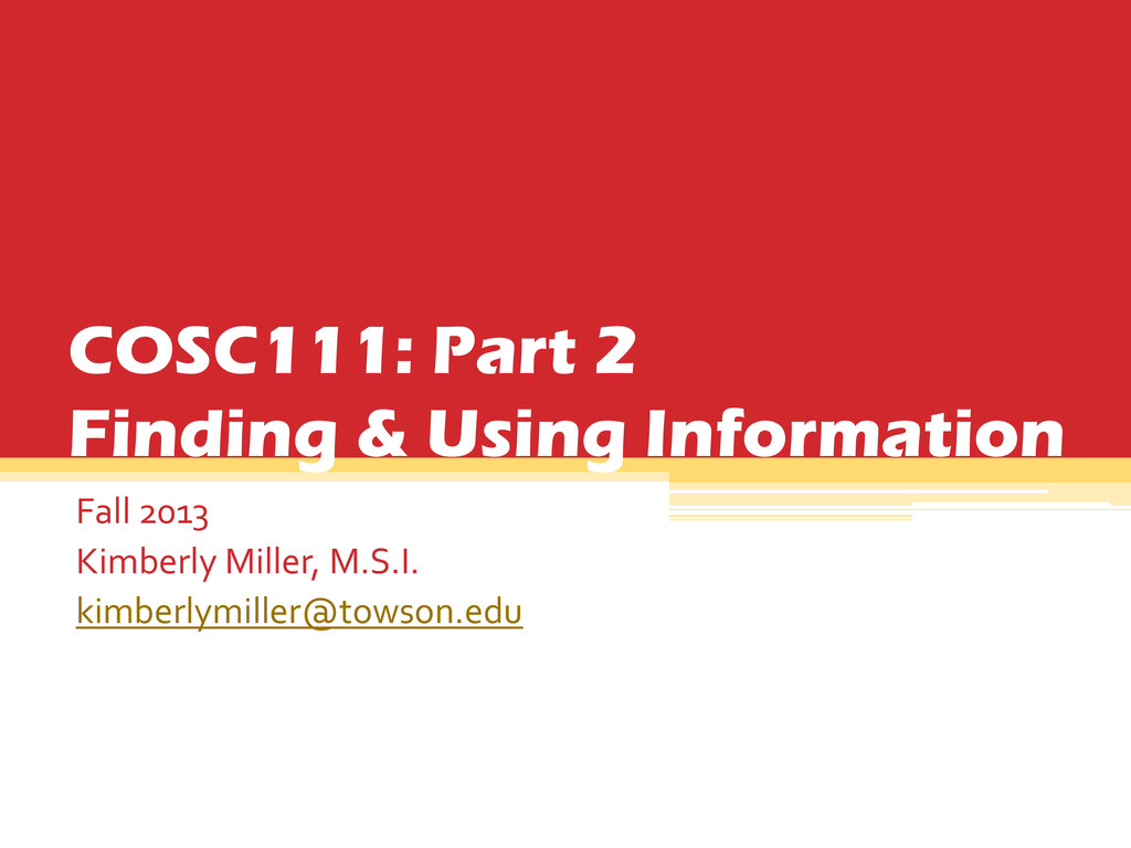 of the Library's resources at once. • Find books, articles, media, government information, and other library resources all in one place. • Search what Towson owns as well as resources at other USMAI Libraries. *but not ALL!!