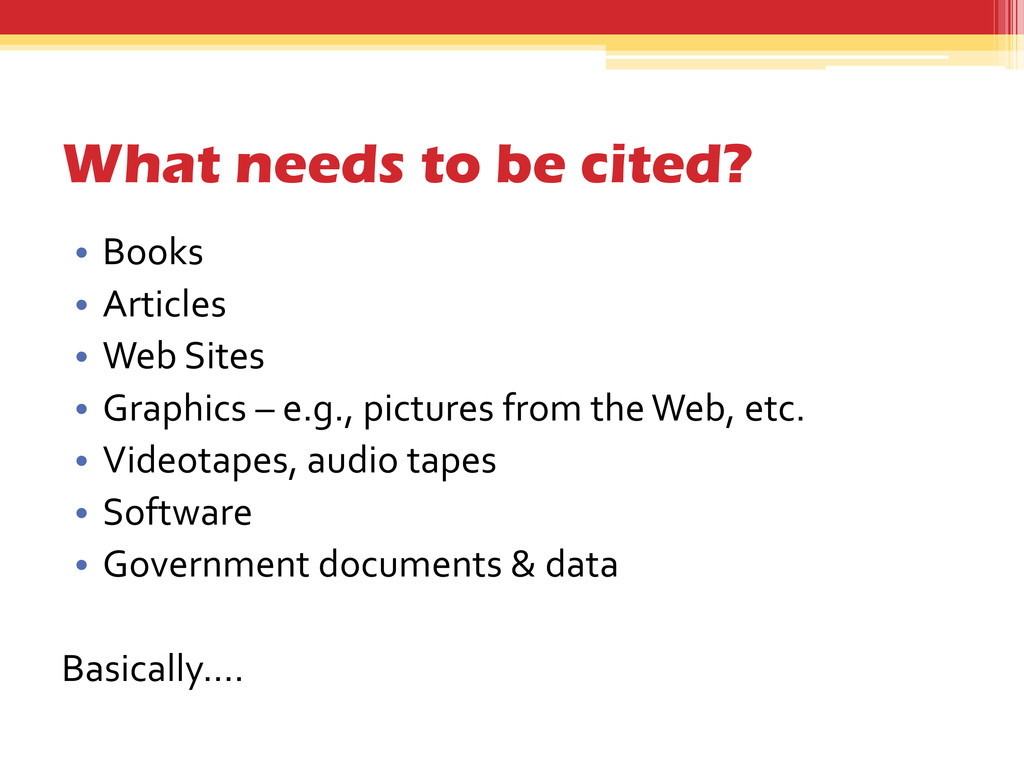 8. What needs to be cited? • Books • Articles •