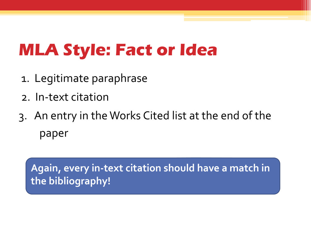 13. MLA Style: Fact or Idea 1. Legitimate paraphrase 2. In-text