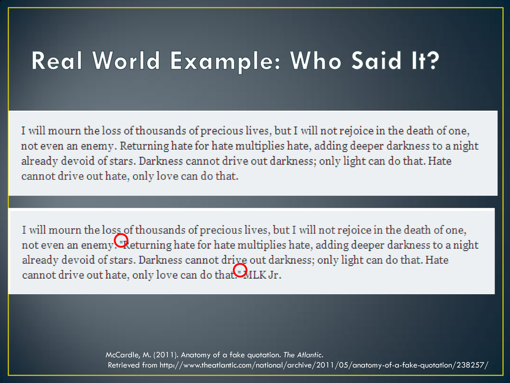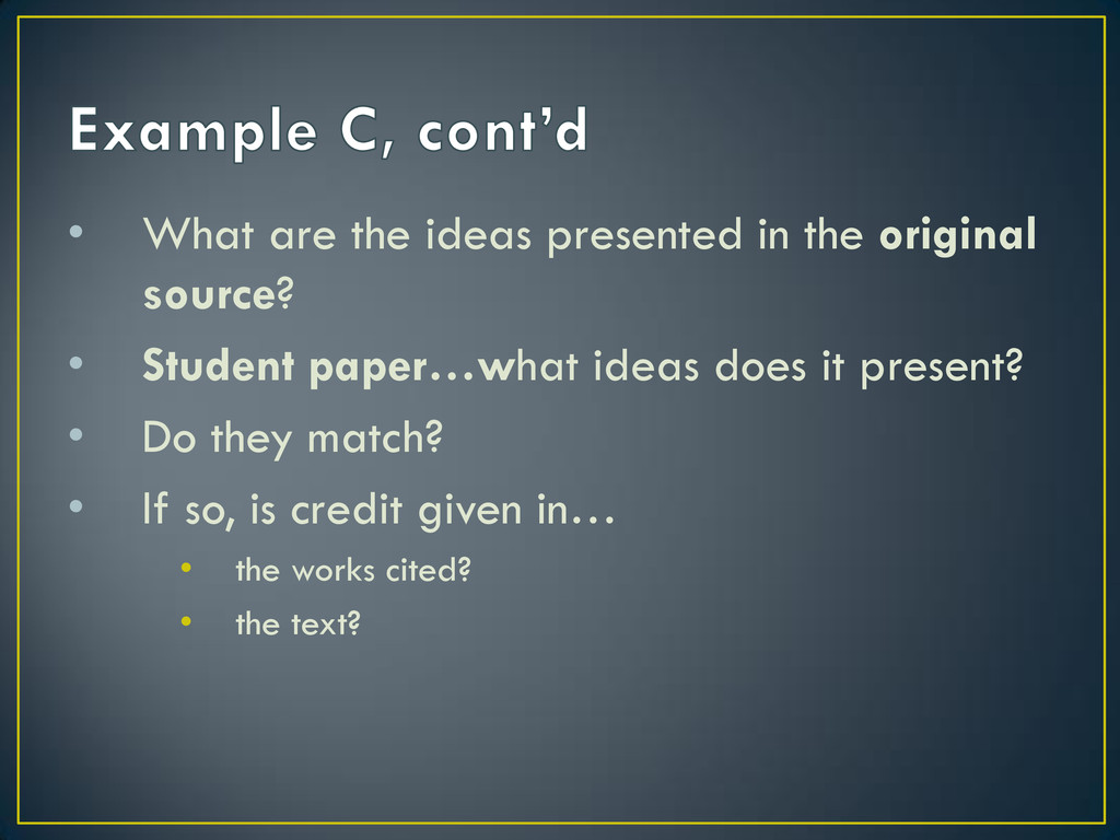 words • A good paraphrase is generally preferred over quotations… why? • Avoid “paraphrase plagiarism”-- where your paraphrase is too similar to original source • Shift + F7 ≠ your own writing • Remember to cite! A paraphrase must always be documented
