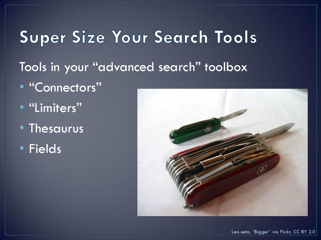 course gateway • Narrow your results? 1. Limiters (e.g., date range, “peer review” checkbox) 2. Fields (e.g., subject and thesaurus) 3. More specific search terms • Expand your results? 1. Try new keywords or different combinations of keywords 2. Citation chasing 3. Multiple searches in multiple databases