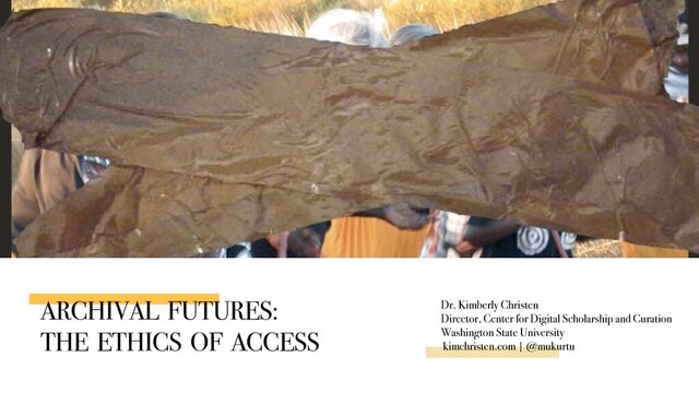 This presentation highlights an aspirational, forward-looking temporal lens that complicates the often backward looking tendencies of archival work in order to provide a framework for that future shaped around ethical engagements and reciprocal practices, by thinking through types and modes of accountability that we share as stewards and care-takers of cultural belongings and knowledge in whatever form they may take, analog or digital.