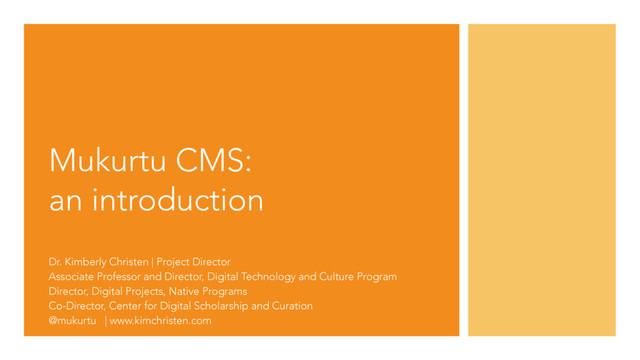 Associate Professor and Director, Digital Technology and Culture Program Director, Digital Projects, Native Programs Co-Director, Center for Digital Scholarship and Curation @mukurtu | www.kimchristen.com