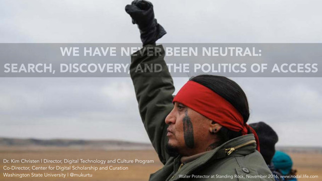 OF ACCESS Dr. Kim Christen | Director, Digital Technology and Culture Program Co-Director, Center for Digital Scholarship and Curation Washington State University | @mukurtu Water Protector at Standing Rock, November 2016, www.nodal.life.com