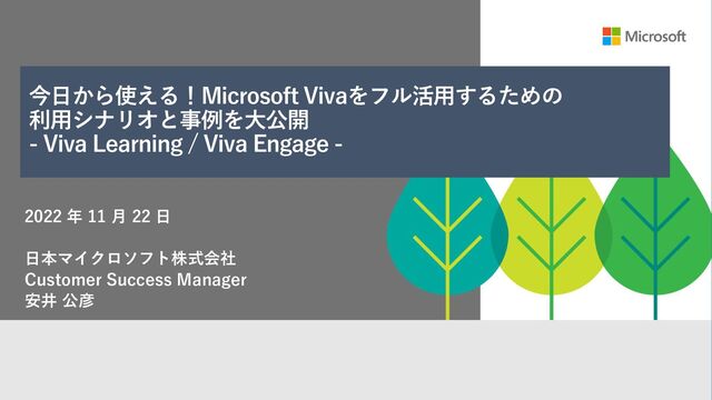 今日から使える!Microsoft Vivaをフル活用するための利用シナリオと事例を大公開。