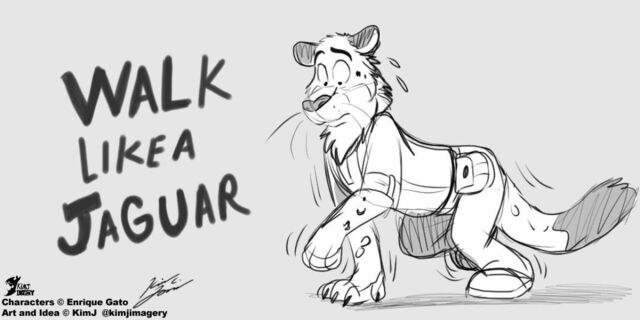 These random notes are ideas for my "What If" story about Tad, who gets a curse placed on him and must undergo a trial to remove it. In this part of the story, Ramona teaches Tad how to walk on all fours, but unfortunately, he struggles with it. This scene is part of the "Jaguar Tad" narrative.