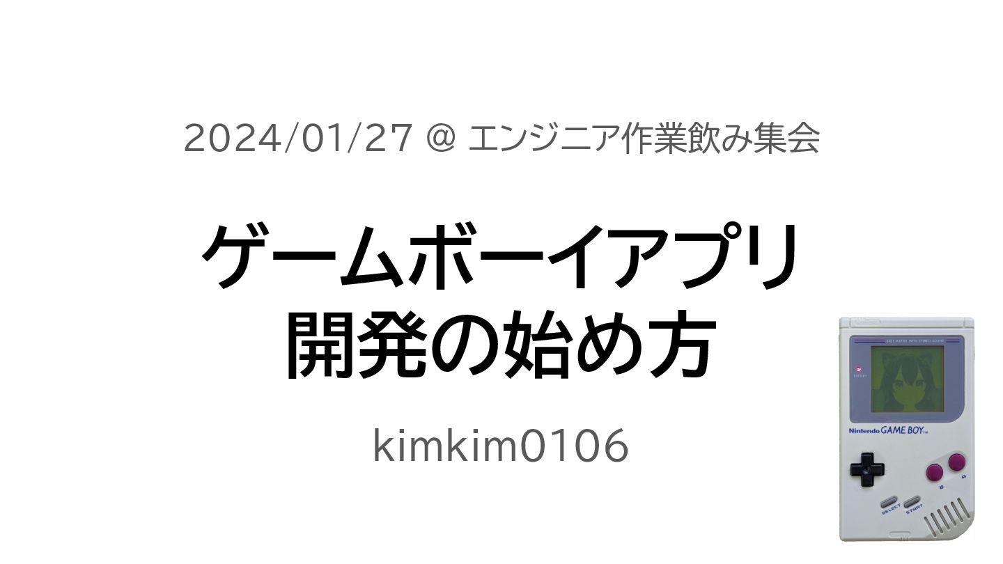 ゲームボーイアプリ 開発の始め方 kimkim0106 2024/01/27 @ エンジニア作業飲み集会