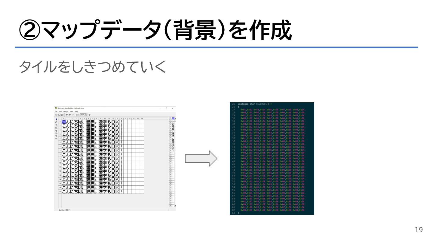 ②マップデータ(背景)を作成 タイルをしきつめていく 19
