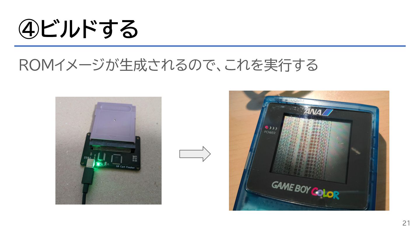 ④ビルドする ROMイメージが生成されるので、これを実行する 21