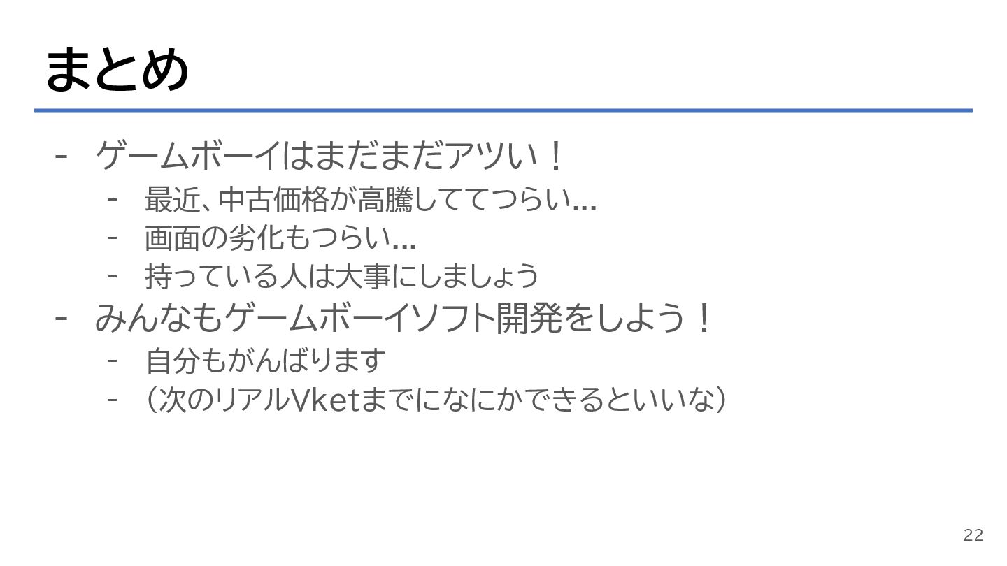 みんなもゲームボーイソフト開発をしよう! - 自分もがんばります - (次のリアルVketまでになにかできるといいな) 22