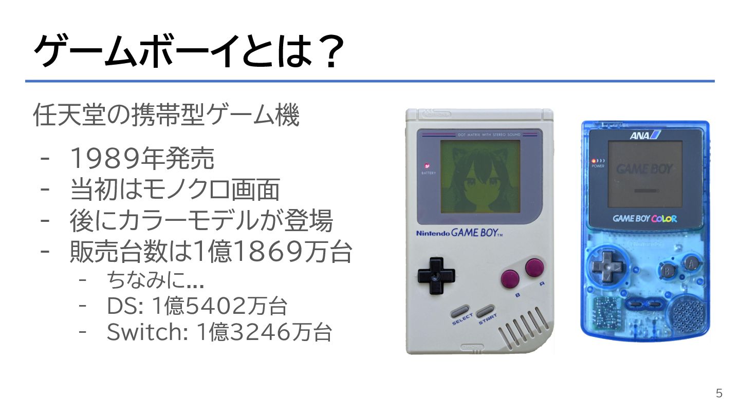 ゲームボーイとは? 任天堂の携帯型ゲーム機 - 1989年発売 - 当初はモノクロ画面 - 後にカラーモデルが登場 - 販売台数は1億1869万台
