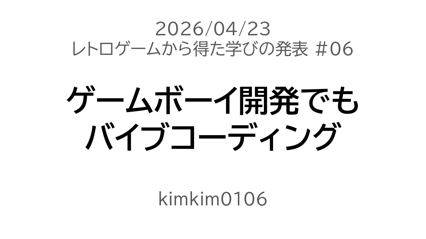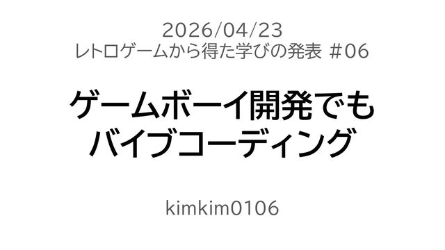 ゲームボーイ開発でも バイブコーディング kimkim0106 2026/04/23 レトロゲームから得た学びの発表 #06