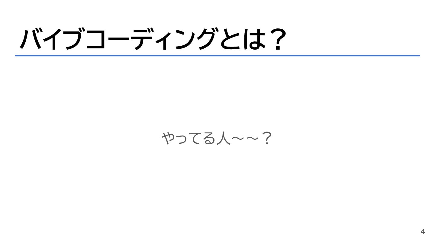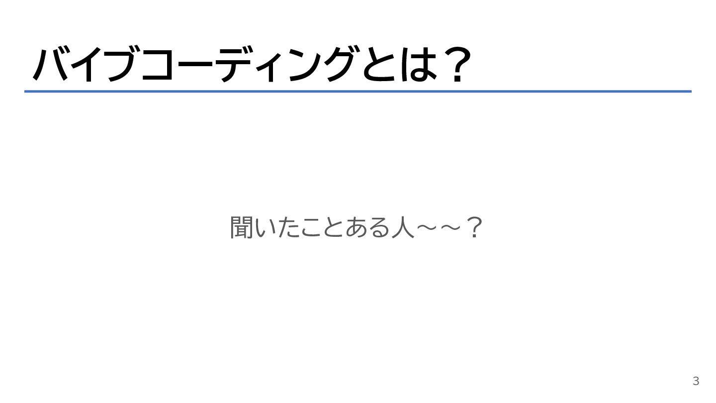 聞いたことある人〜〜? バイブコーディングとは? 3