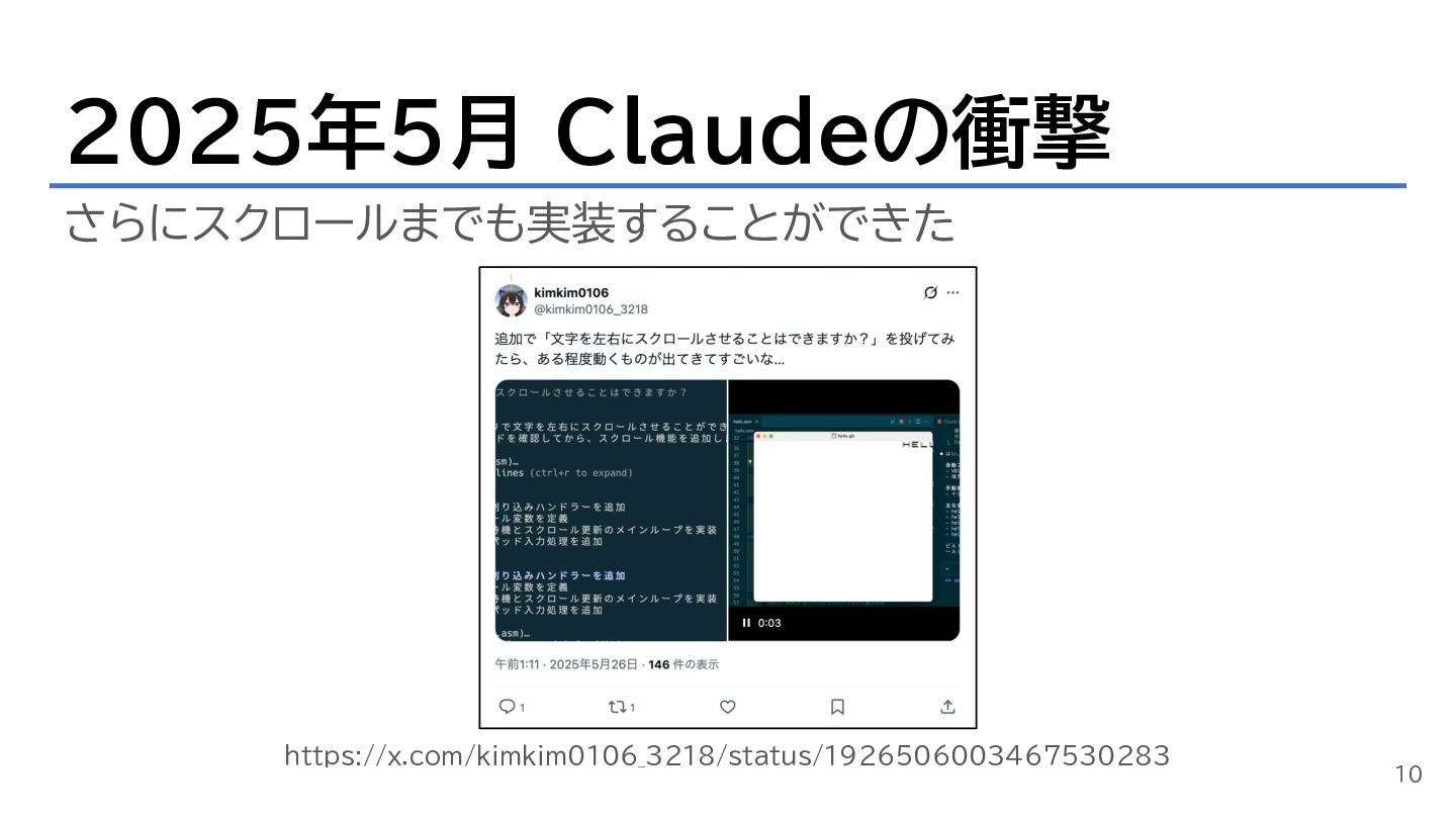 さらにスクロールまでも実装することができた 2025年5月 Claudeの衝撃 10 https://x.com/kimkim0106_3218/status/1926506003467530283