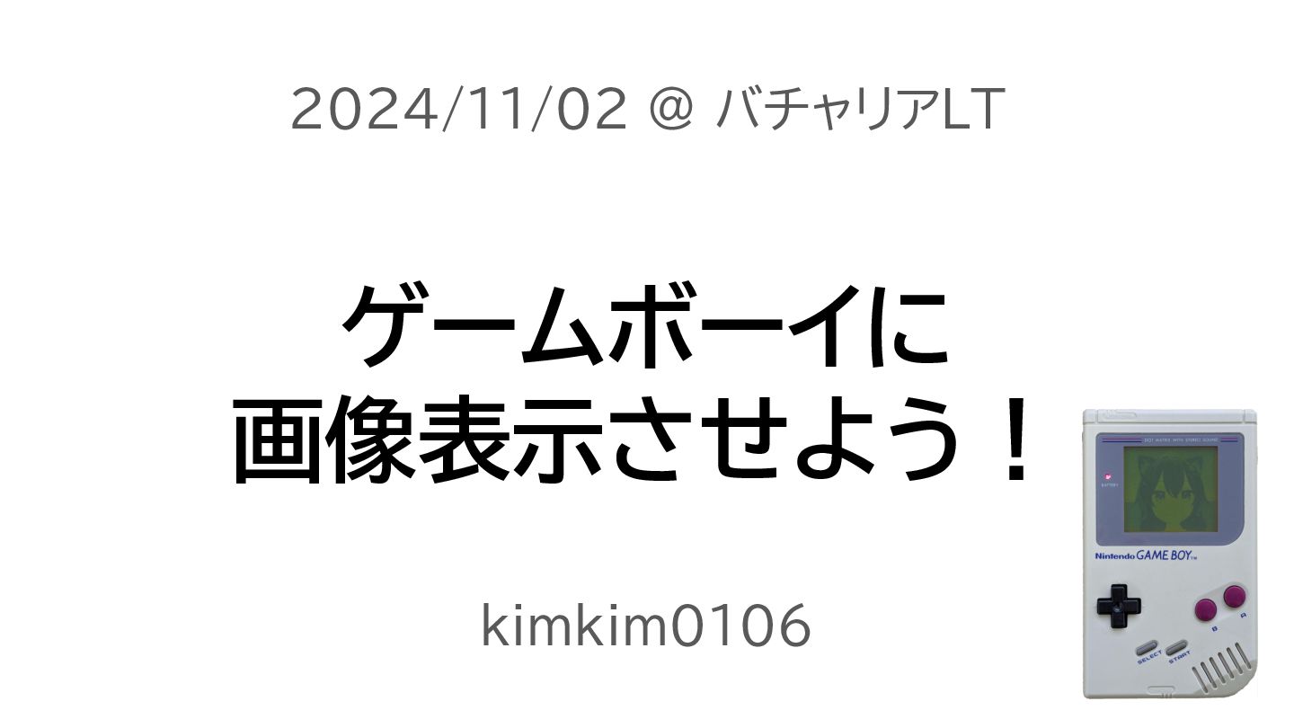 ゲームボーイに 画像表示させよう! kimkim0106 2024/11/02 @ バチャリアLT