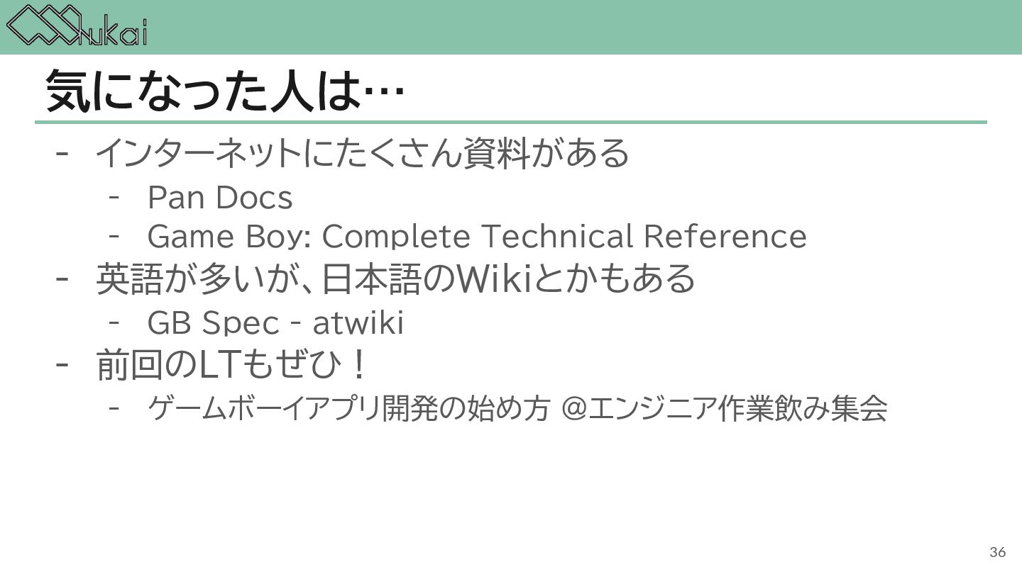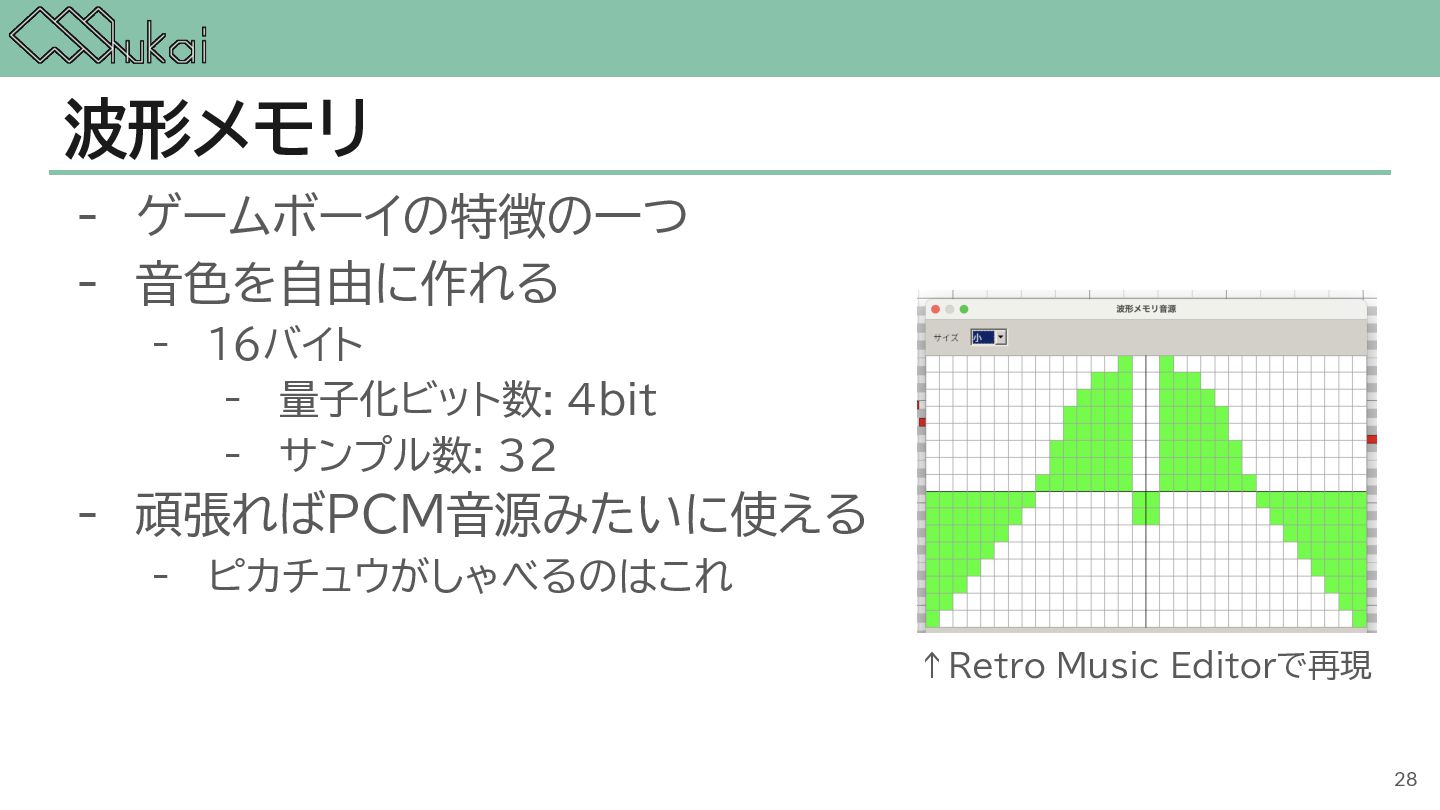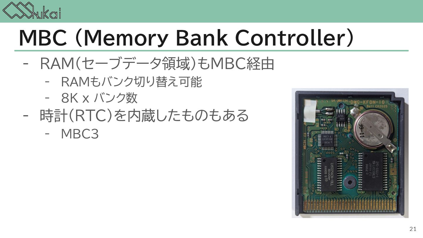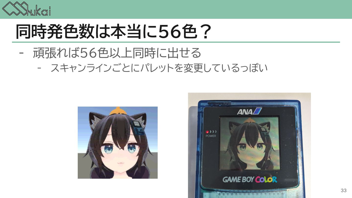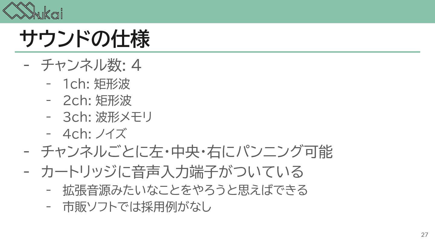 MHz CGB-CPU (8bit CISC) @ 4.19 MHz, 8.39 MHz AGB-CPU (ARM7TDMI) @ 16.78 MHz WRAM 8 KB 32 KB 32KB + 256KB VRAM 8 KB 16 KB 96KB Screen モノクロ4階調 STN液晶 160 x 144 ドット 32768色 反射型TFTカラー液晶 160 x 144 ドット 32768色 反射型TFTカラー液晶 240×160 ドット Sound 4チャンネル ステレオ出力 矩形波x2, 波形メモリx1, ノイズx1 4チャンネル ステレオ出力 矩形波x2, 波形メモリx1, ノイズx1 6チャンネル ステレオ出力 矩形波x2, 波形メモリx1, ノイズx1, PCMx2 Power DC 6V 0.7W (単3電池 x 4) DC 3V 0.6W (単3電池 x 2) DC 3V 0.6W (単3電池 x 2) 5