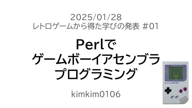 Perlで ゲームボーイアセンブラ プログラミング kimkim0106 2025/01/28 レトロゲームから得た学びの発表 #01