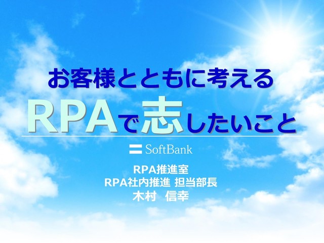 ・ ソフトバンクRPA推進室 RPAメディエーター ・ ソフトバンクユニバーシティ(ICI)認定講師 ・ 日本NLP協会 NLP-LABプロファイル®認定コンサルタント&トレーナー ・ 日本NLP協会 NLP認定セールスコンサルタント&トレーナー ・ 一般社団法人 和の国 「日本心学協会」副事務局長 • 好きなもの ➢ 不空大灌頂光真言、般若心経、観無量寿経 • バックグラウンド ➢ 転職➋回+合併➁回、債権回収25年!!! • 好きな言葉 ➢ 『天上天下唯我独尊』、『人間だもの』、『煩悩』 FaceBook:kimu777 講演依頼 Welcome!